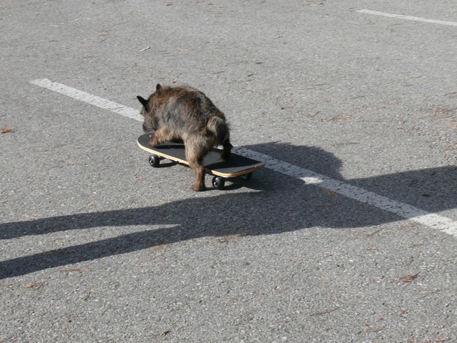 This is Crackerjacks the wonder dawg and his human, Gary Spellbring. Crackers' antics are the result of patient training by his other human, Lenore, and this is just one in Crackers' huge bag of cute canine tricks.